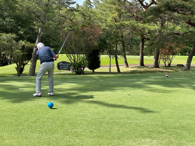 16番487yロングは、ドライバーは竜巻球。8アイアンでのセカンドはアホ球。3打目を3wで打つもショート。寄らず入らず。しっかり3オンのK.Kさんが残念パー。