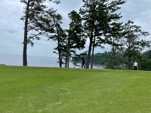 川奈の感想・・・・いやー、ホント素晴らしい。日本で廣野と川奈は別格です。やはりアリソンさんは凄いです。60歳過ぎの体には上りがきついですが、このくらいのアップダウンで音を上げていてはゴルファーとは言えませんね。我々プレーヤーにとっては海側の木々を剪定してくれたのは最高のプレゼントでした。芝(フェアウェイ)は少し伸びてましたが、生き生きとしていました。大島コースの磯ラーメンとカレーが食いたかった~。