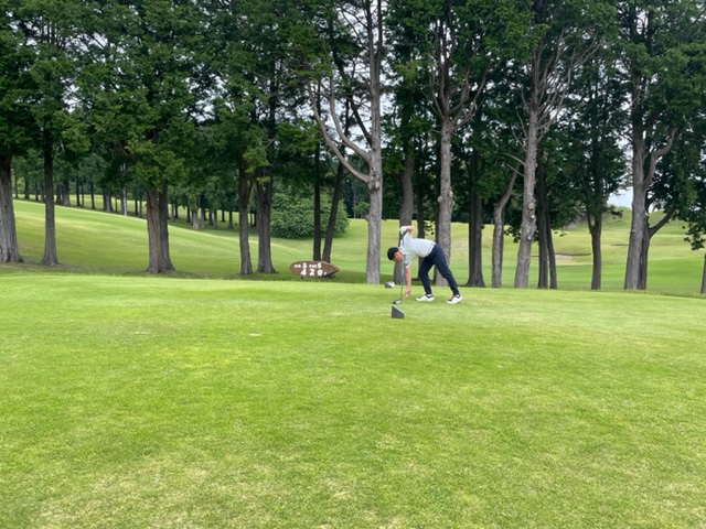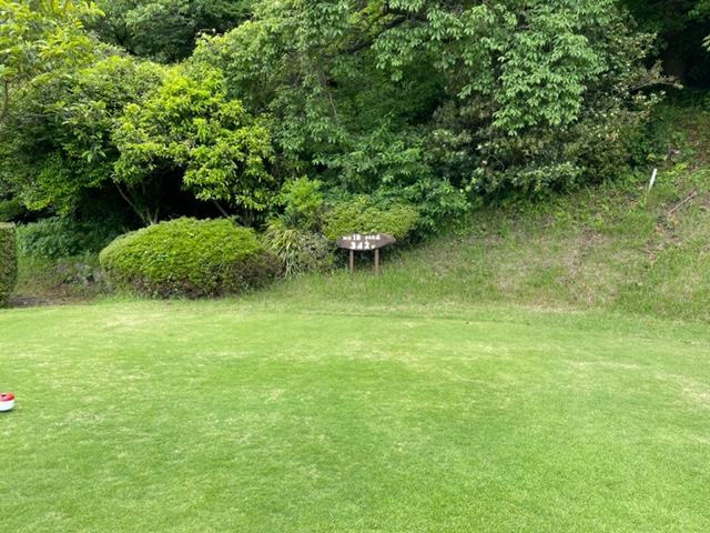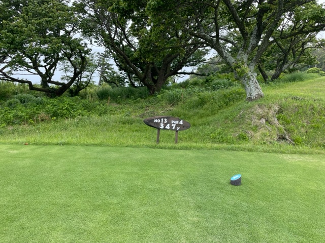 13番347yミドルは、ドライバーはナイス。9アイアンで打つも左へ。ナイスアプでパー。同じくナイスアプでM.Kさんもパー奪取。
