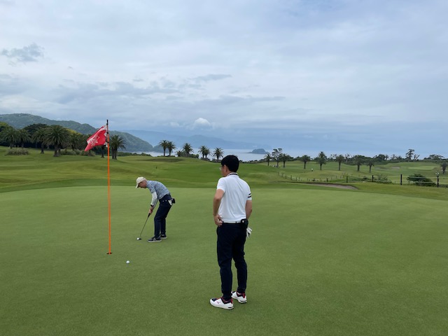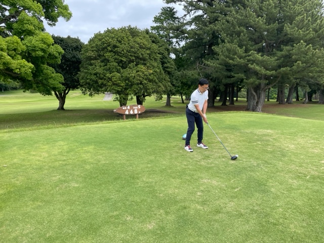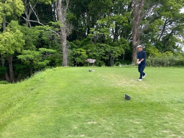 1番409y豪快な打ち下ろしミドルは、ドライバーは左ラフへ。6アイアンで打つも左へ。寄らず入らず。素晴らしいアプから東京都のM.Kさんがパー発進。
