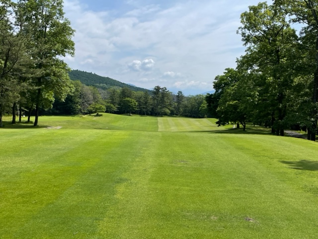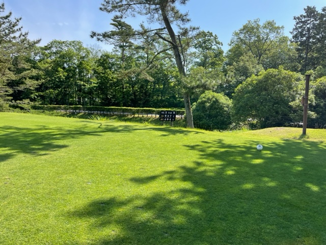 7番314yミドルは、ドライバーはナイス。52度で2オン。無難にパー。素晴らしいアプから東京都のF.Mさんが銅パー。また、T.Kさんが鉄パー。