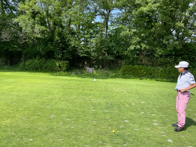 今日は白ティ。Aグリーン。今日のグリーンスピードは9.4フィートとのこと。