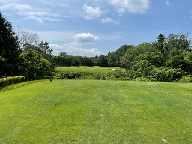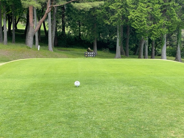 1番527y左ドッグのロングは、ドライバーはまずまず。3w、25度で打つもデカい。なんとか寄せて銅パー。見事な3オンから東京都のT.Kさんが無難にパー。流石は30歳。