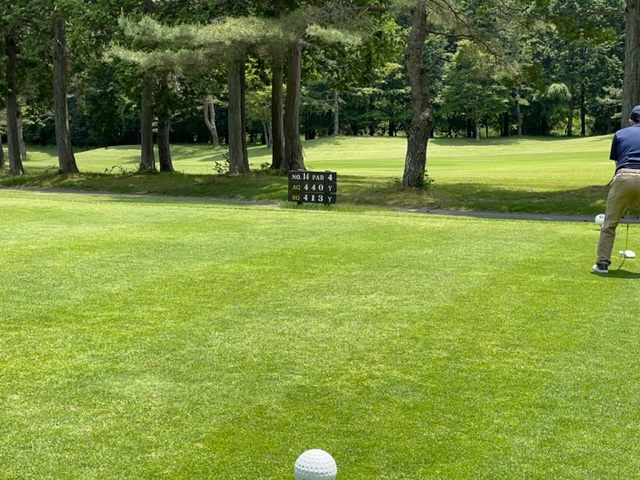 14番440yと距離のあるミドルは、ドライバーは左ラフへ。5アイアンで打つも右へピュー。寄らず入らず。この難ホールを素晴らしい3打目でH.Sさんが鉄パー。