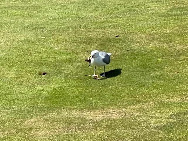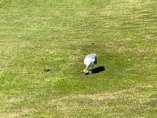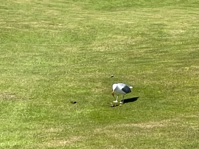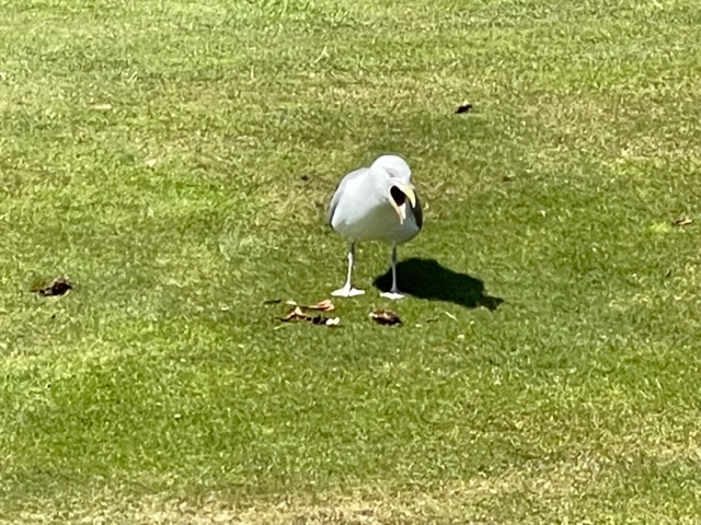 12番459yインで唯一のロングは、ドライバーはナイス。キャディは刻めと言ってきたが、3uでバンカー越えを狙うと宣言。なんとか越えて良い位置へ。が、3打目がショボく奥6mに。入らずパー止まり。見事な寄せでJ.Oさんがバーディ奪取。今日2個目!やるな!同級生!