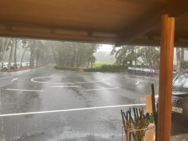 前が遅いからと茶店に寄る。で、ここでドシャ降りとなる。雷も鳴り、グリーンは皆水浸し。30分強休んでハウスに戻る。
