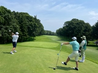 アウトから。今日は青ティで進行します。H.Oさんには2ホールハンディを貰います。