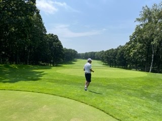 10番494yロングは、ドライバーはまずまず。5アイアンでのセカンドが竜巻球でバンカーイン。8アイアンのローボールでセンターライナーで花道へ。寄らず。3パンチで7となる。またロングでダボ。