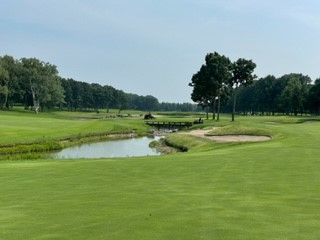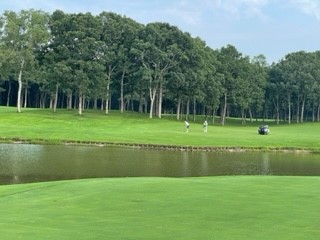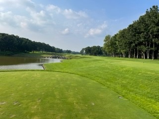 16番532yロングは、ドライバーはナイス。3wがトップ気味もなんとか池を越えて左ラフへ。PWで3オン。残念パー。4mが入らずH.Oさんもバーディならず。