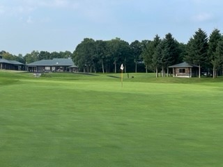 17番135yショートは、9アイアンで2mに1オン。が、沈められず。5mを沈めたS.Sさんがバーディ奪取。素晴らしい。同じく4mに1オンのH.Oさんも無難にパー。