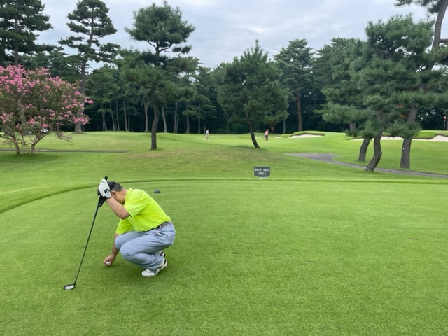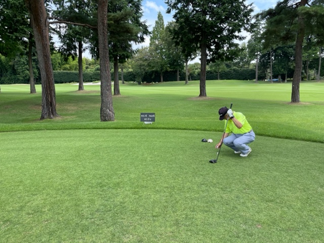 あ、今日はスコアカードがなくなり、思い出し出し書いてみますが、ちょっと違っていたら、ごめんなさい。アウトから。ティは黒ティで進行します。