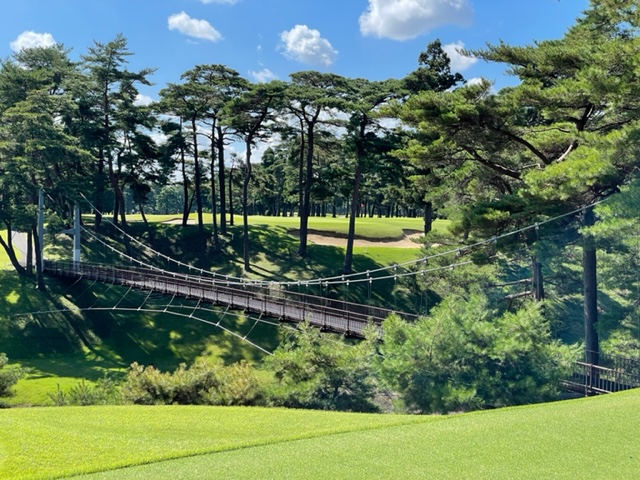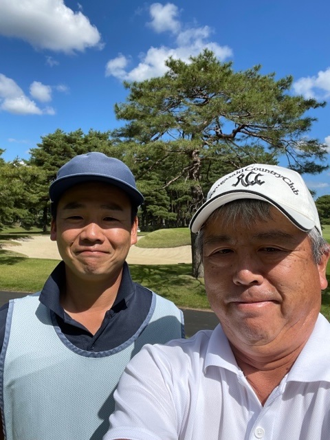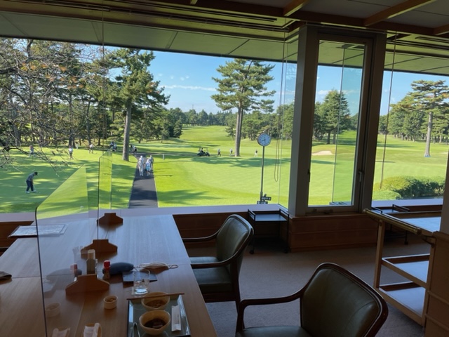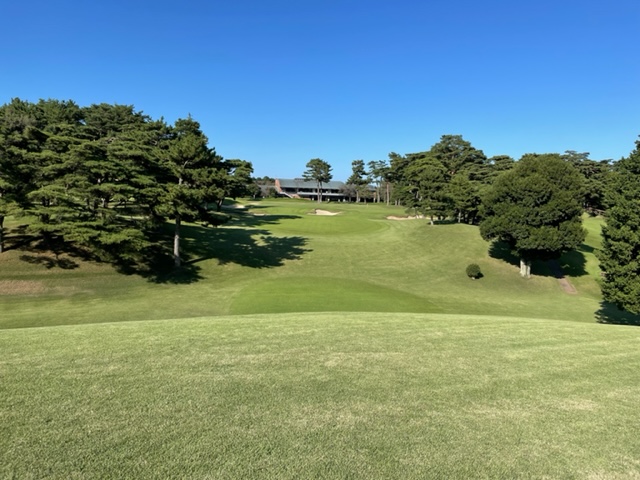 その後、パターを転がして、インから。今日は縁の会員さんのT.KさんとK.Tさんが加わっての4名で廻ります。今日のグリーンはCグリーン。青ティで進行します。K.Tさんとはマッチプレーで楽しみます。