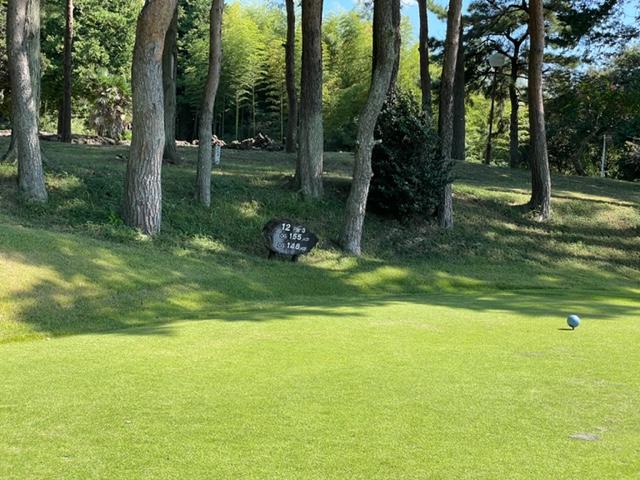 12番150yショートは、8アイアンで打つも竜巻球でサブグリーンへ。ドロップしてまずまずもパターが入らず。見事なアプからK.Tさんがパー。T.Kさんもナイスアプでパー。イーブン。
