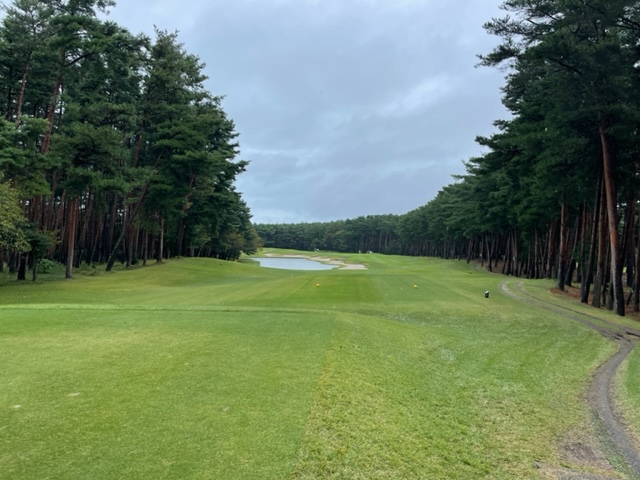 4番199yショートは、5wでカラーへ。パターで転がすもオーバー。ボギー。素晴らしいアプからI.Mさんがパー奪取。