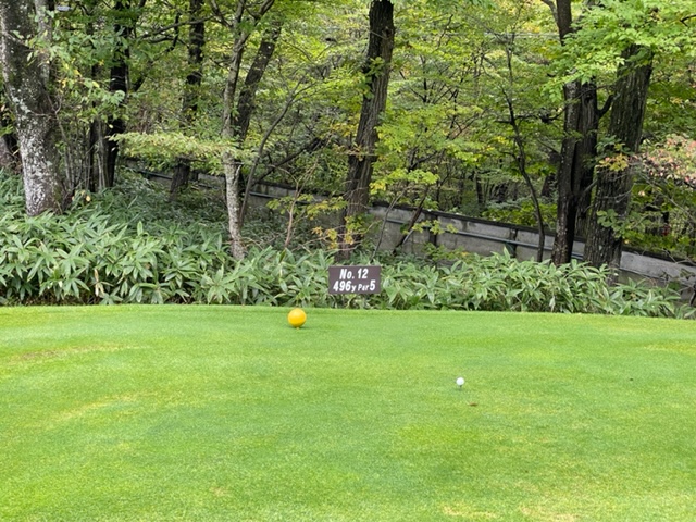 5番472yロングは、ドライバーはまずまず。3wが右へ。木の後ろから8アイアンで打つもショート。なんとか寄せてパー。3アップ。