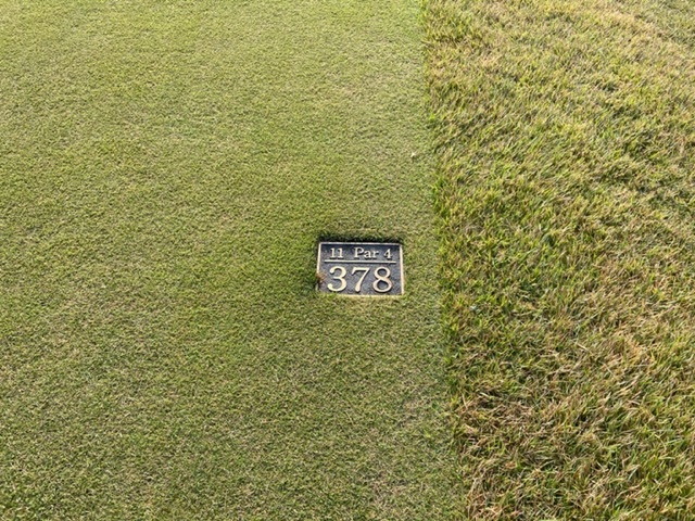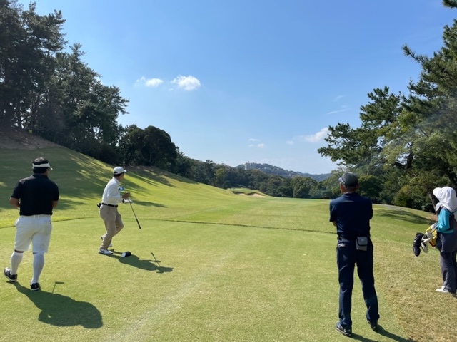 10番374yミドルは、ドライバーは左へ飛びます。暫定球を打つ。なんとか初球はセーフ。ややこしい位置から8アイアンで奥14mに2オン。が、3パンチ発進。見事な2オンから縁のJ.Kさんと同級生のH.Yさんがパー。お見事。