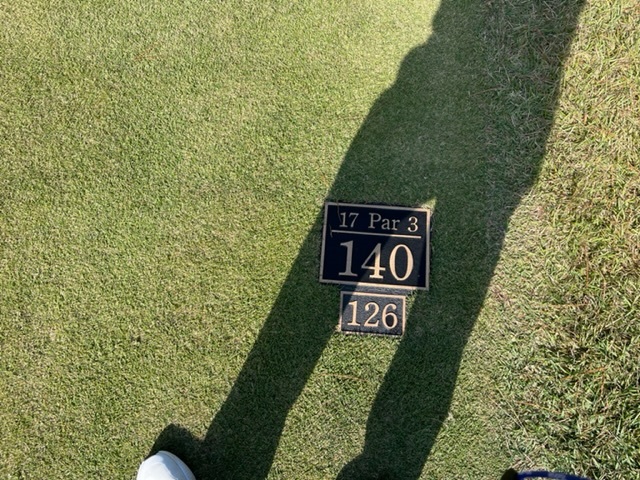 17番140y打ち上げショートは、7アイアンで打ってカラーへ。パターで無難にパー。
