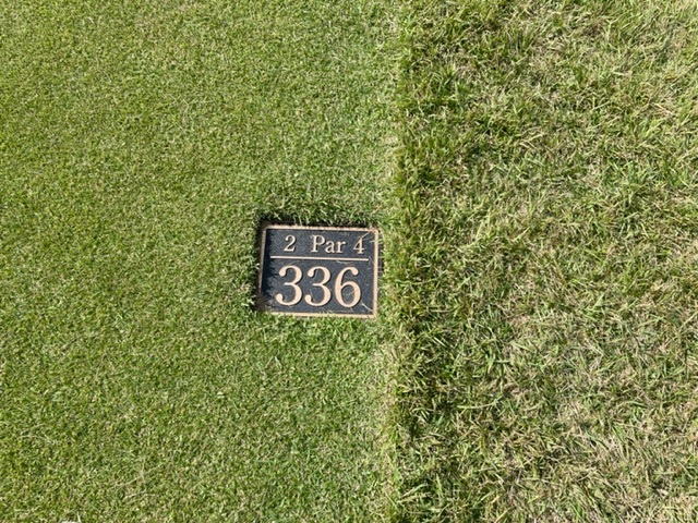 2番336y打ち下ろしショートは、ドライバーは完璧。56度で奥2.4mに2オン。沈めて今日2個目のバーディ。しっかり2オンのN.YさんH.Yさんも無難にパー。