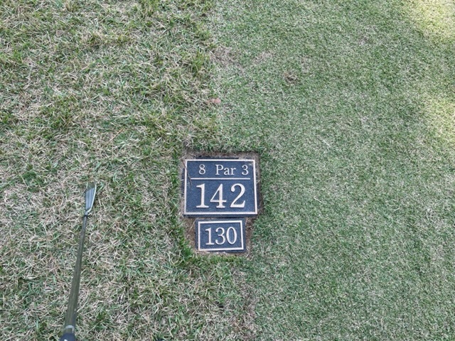 8番142yショートは、7アイアンで打つもショボい球。アイアンが悪いねー。寄らず入らず。