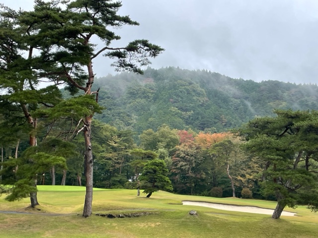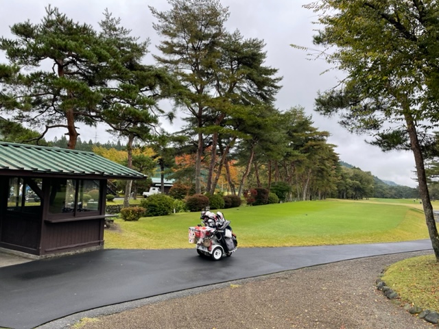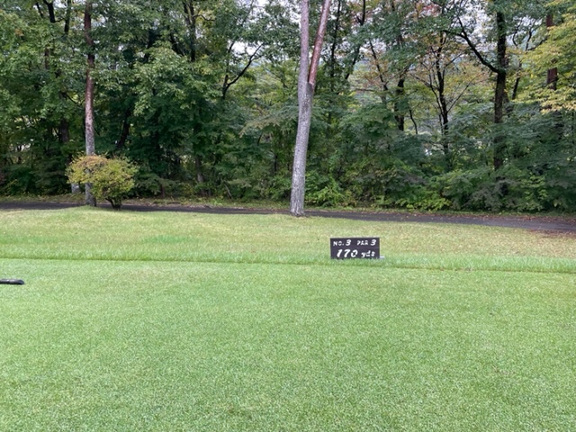 今日は青ティで進行します。アウトから。今日は松本理事長とご一緒します。で、キャディのAさんはあの雨天時の研修キャディだったAさんです。「前田さん、あの時は本当にありがとうございました!今でも辞めないで頑張ってます(笑)」との言葉をもらいました。