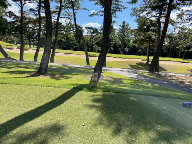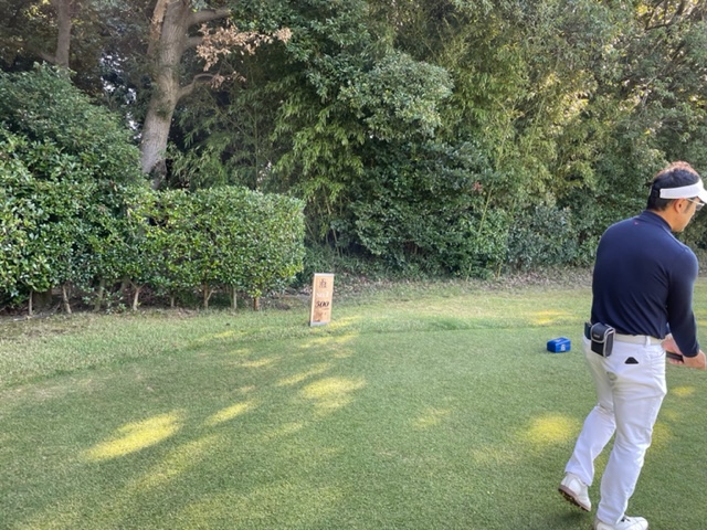 11番472yミドルは、ドライバーは右ラフへ。フェアウェイまで飛びません(笑)。3w、52度で3オン。ボギー。