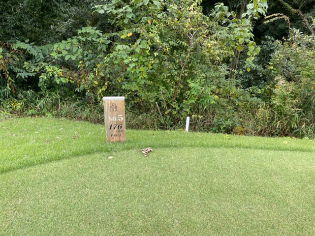 4番461yこれまた長いミドルは、ドライバーは竜巻球。6アイアンでレイアップ。残り110yからPWで3mに。が、決められずボギー。