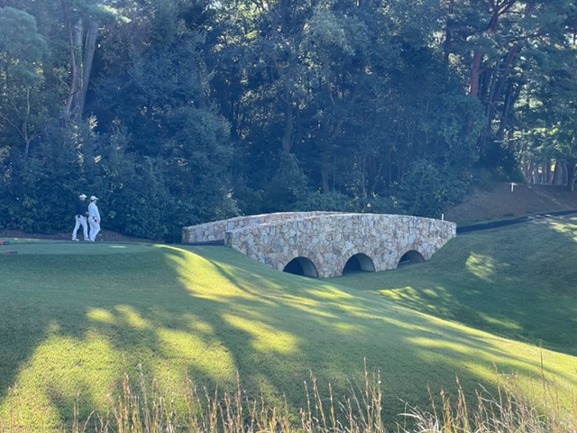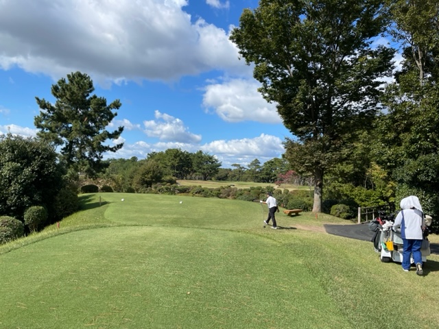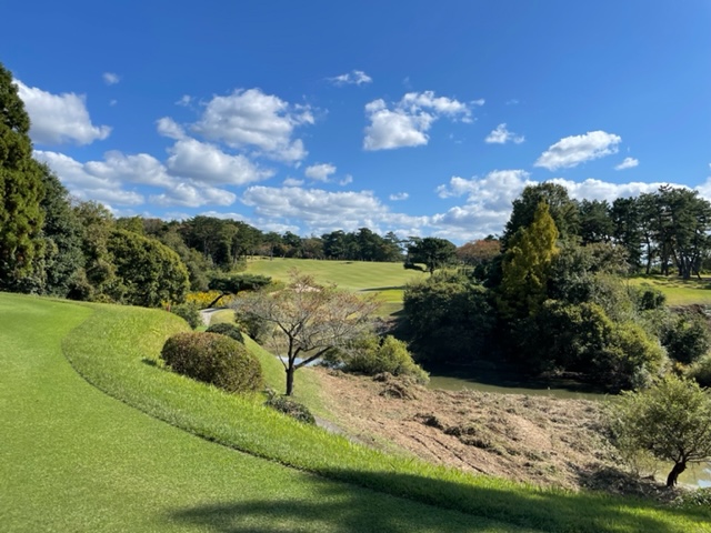 12番604y左ドッグのロングは、ドライバーをN.Yさんのを借りて打つ。右フェアウェイへ。低い球となった。3w、6アイアンで打つも右へ。ナイスアプ&パターでパー。同じくナイスアプからN.Yさんもパー。