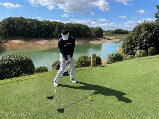 10番351yミドルは、ドライバーはショボい球でバンカーイン。9アイアンで脱出。56度で3オン。ボギー。