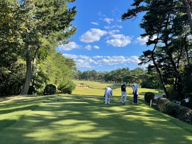 7番217yショートは、3uで打つも手前のバンカーイン。出ず。3オンのまたまたダボ。ここを見事なティショットでM.Fさんが5mにつけて、これを放り込んでバーディ奪取!拍手!