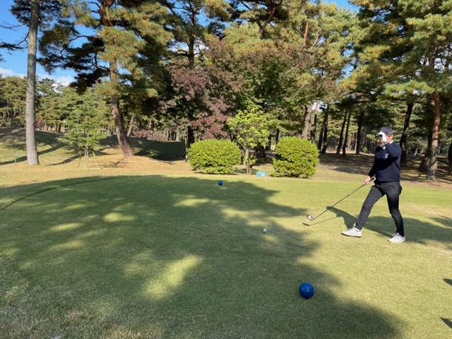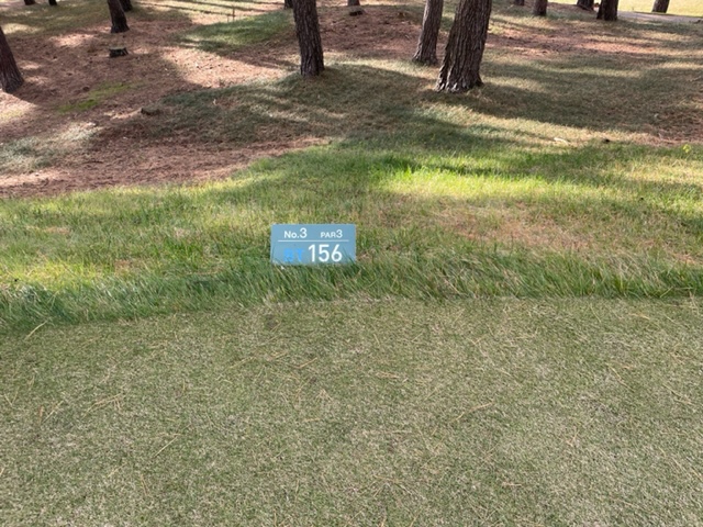 3番156yショートは、7アイアンで9mに1オン。残念パー。カラーに運ばれていたM.Cさんがこれを放り込んでバーディ奪取!素晴らしい。6mに1オンのS.Mさんも残念パー。