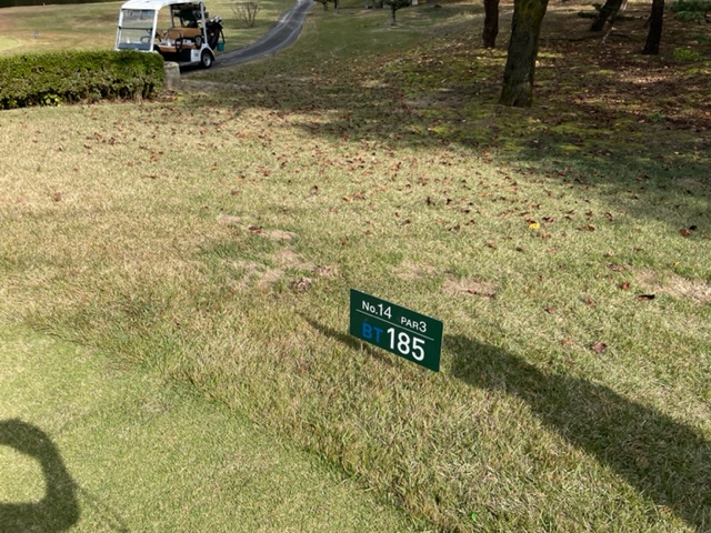 13番535yロングは、ドライバーは左ラフへ。3uでのセカンドがまずまず。8アイアンで打つもショボい球。寄らず入らずボギー。