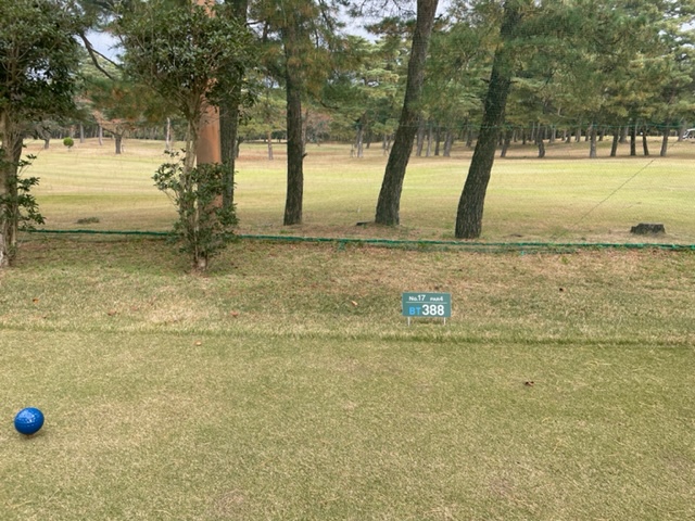 17番388y右ドッグのミドルは、ドライバーはちょいと右へ。ここは左でないとな~。25度のuで木越えを敢行したが、木に掠る。残り50yからSWで2mに3オン。沈めてナイスパー。