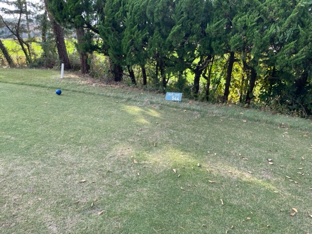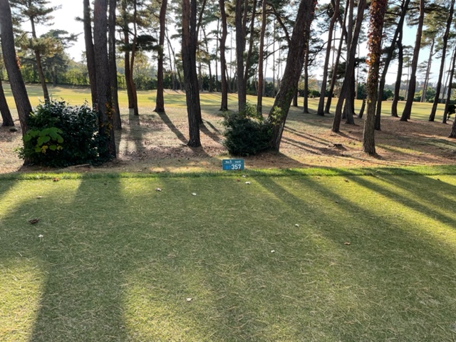 5番357yミドルは、ドライバーは左の木に当たる。8アイアンでチョン出し。3オンからボギー。