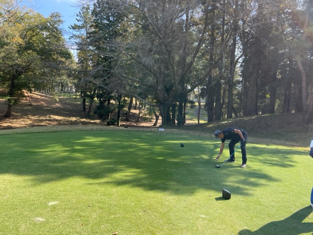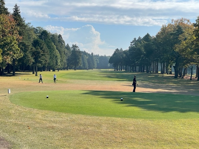 10番506yロングは、ドライバーはまずまず。3wがチョロ気味。8アイアンで6mに3オン。放り込んでバーディ。ラッキー。見事な3オンからA.Iさんが無難にパー。