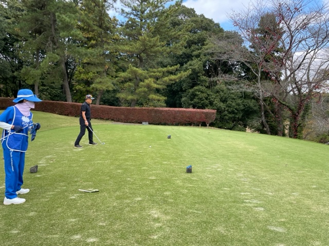 13番152yショートは、7アイアンで打つもショート。寄らず入らず。見事な1オンからA.Iさんが残念パー。また、カラーからS.Kさんが無難にパー。