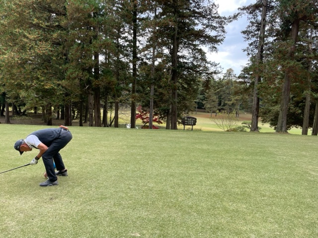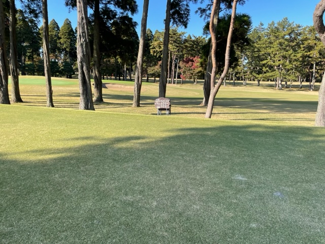 14番368yミドルは、ドライバーは左ラフへ。林入り口から7アイアンでのローフックで狙うも掛からず。寄らず入らずボギー。見事な2オンから東京都のK.Mさんが無難にパー。