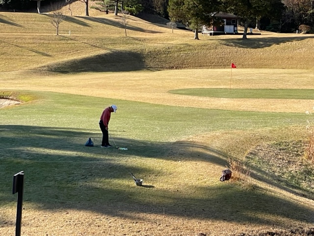 3番155yショートは、7アイアンで打つもショート。残り15yから乗らず。1mを外してダボ。素晴らしいアプからT.Tさんがパー奪取。