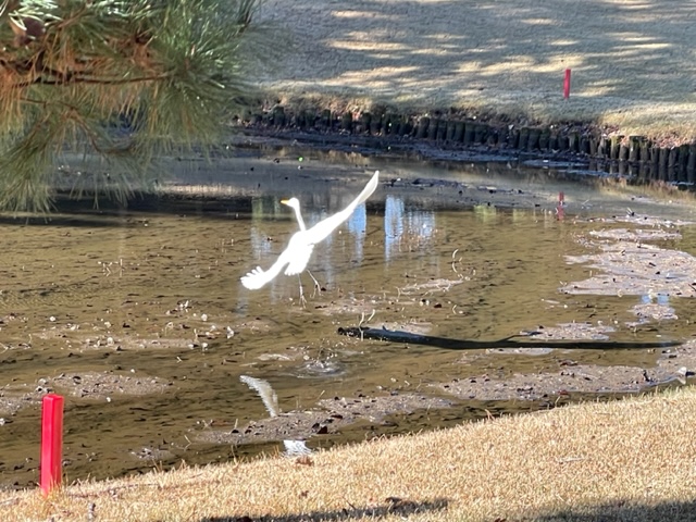 12番431yミドルは、ドライバーはまずまず。が、セカンドの4アイアンが真左へ。3打目も乗らず。ダボ。