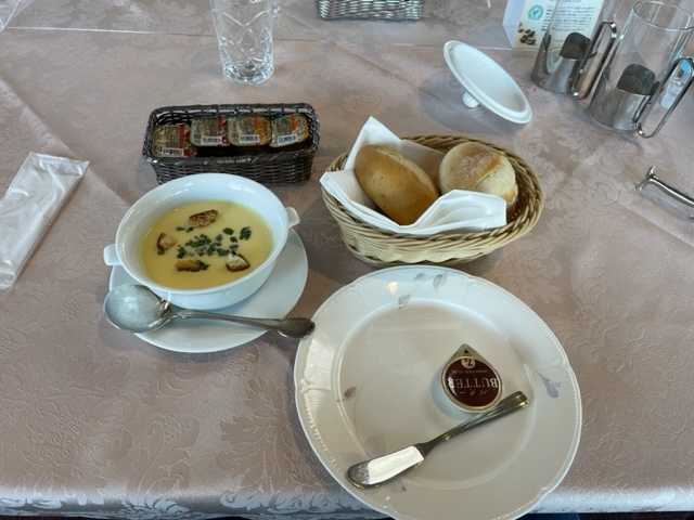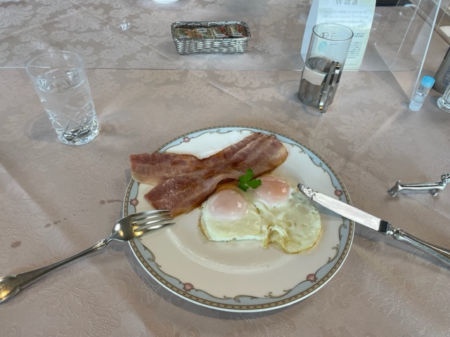 到着後、まずは、レストランへ。縁のF.Kさんがおられたので、ご一緒させていただきベーコンエッグを食す。