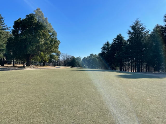 4番360yミドルは、ドライバーはナイス。残り128y上りを8アイアンでピン左9mに2オン。無難にパー。同じく2オンからA.FさんとY.Sさんも無難にパー。