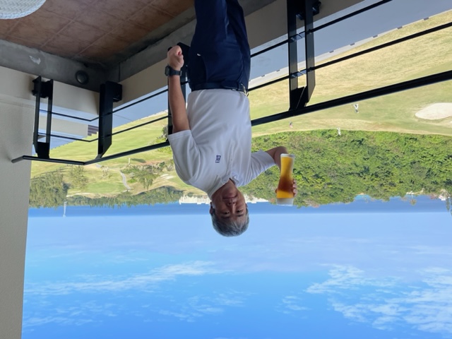 スタート小屋でオリオンビールタイム。ここで腹を決める。明日のゴルフは延期にしようと。ゴルフ場に連絡。あとのお三方にも連絡。