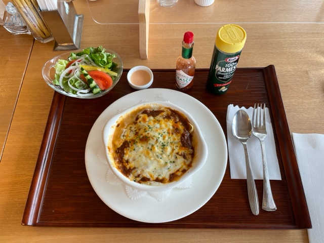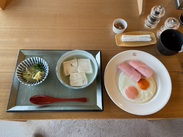 レストランではハムエッグとやっこをお願いし、独りミーティングです。ここは寛げますね~。