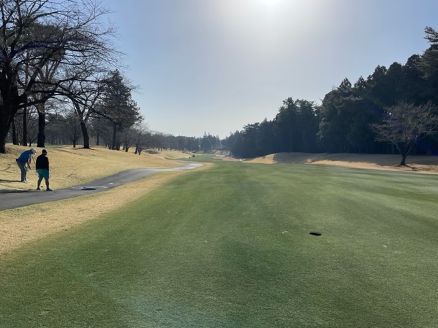 1番355yミドルは、ドライバーはまずまず。8アイアンで2オン。無難にパー。見事なアプでメルウェイと埼玉県のS.Nさんがパー。