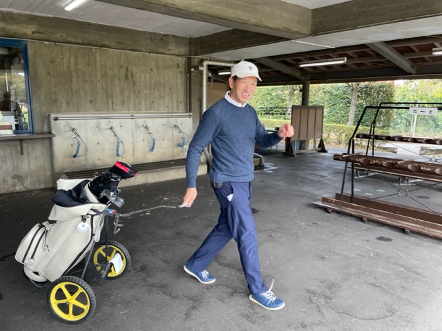 で、合羽を着て、パター練習へ。相変わらず素晴らしい練習グリーン。新しくなっていたスタート小屋にはフリーで飲料が置かれています。これまた素敵です。これまた浦島太郎です。同伴者の同学年で縁の東京都の会員さんK.Oさんはハウス副委員長で「どう、信吾ちゃん、なかなかでしょう!」に「素晴らしい!」と返答します。