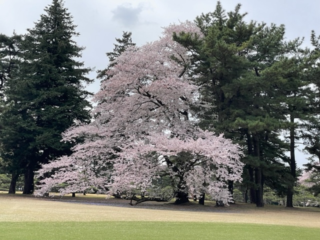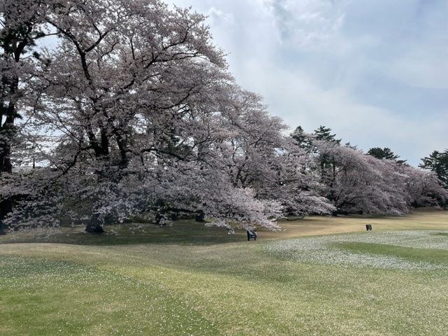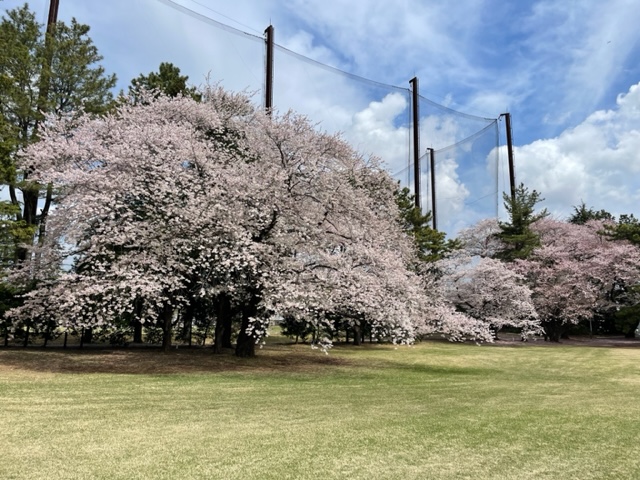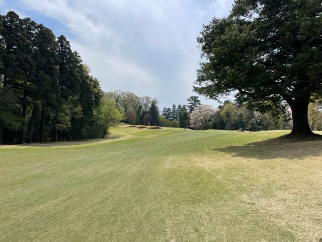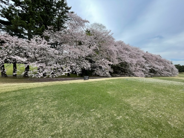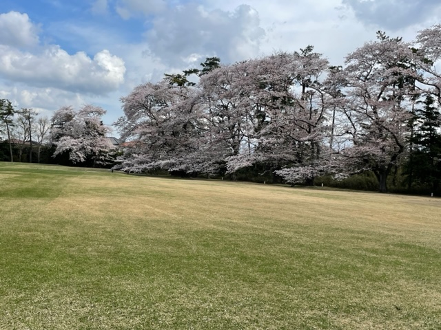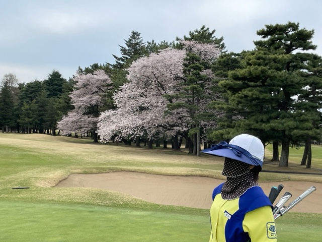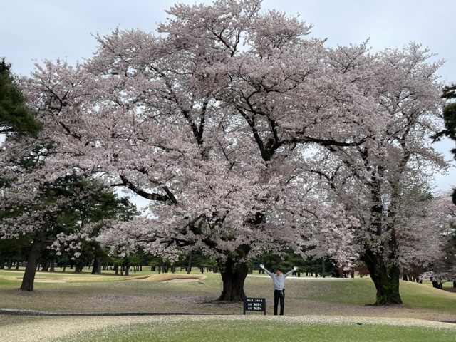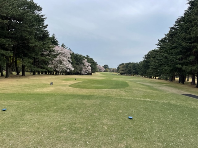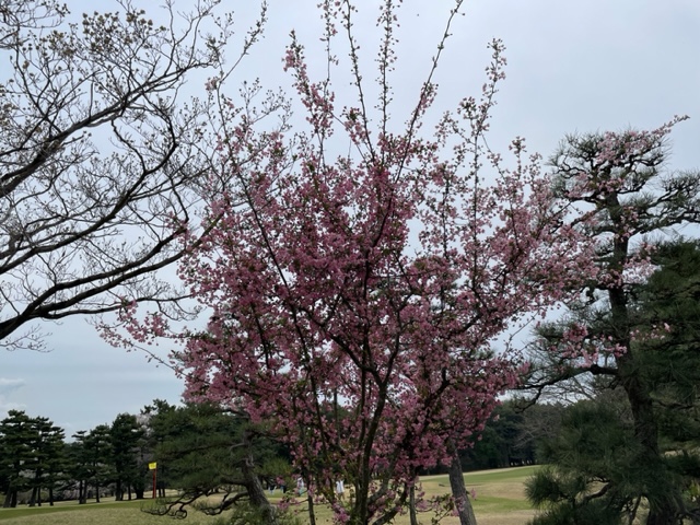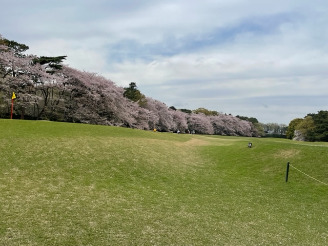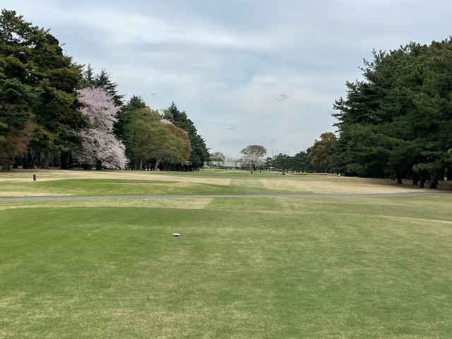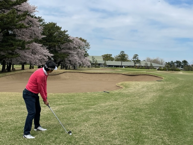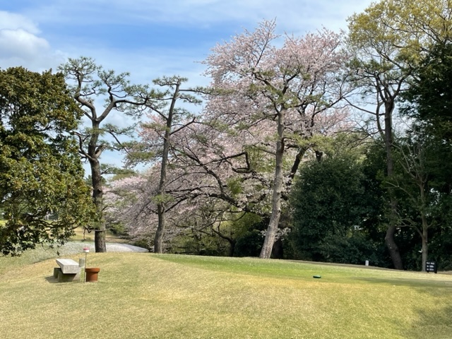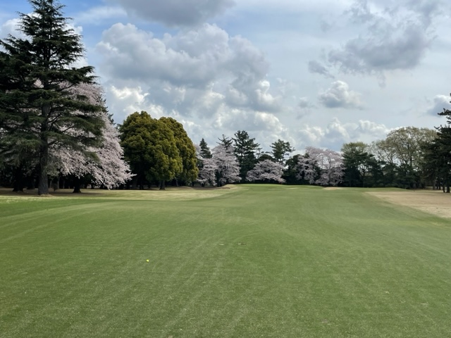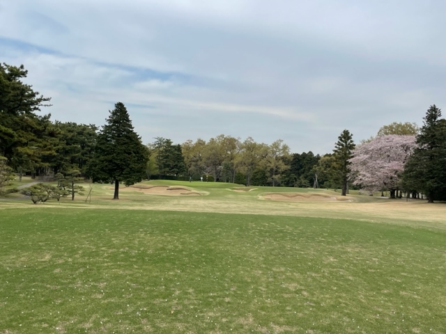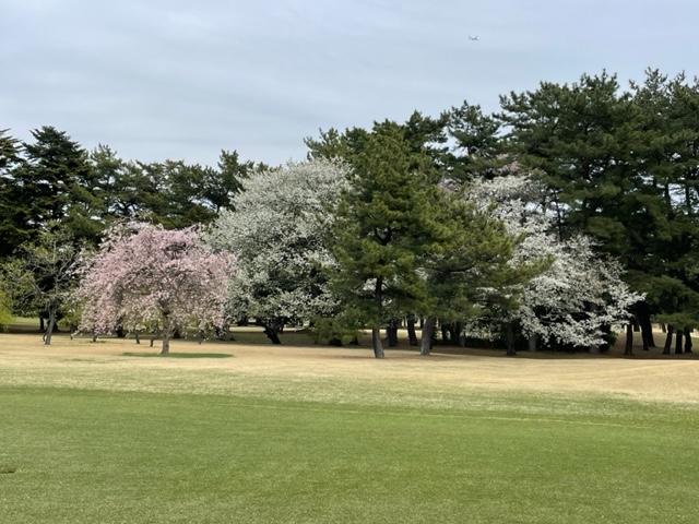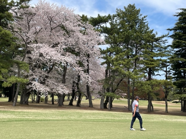 17番桜が美しい374yミドルは、ドライバーは右の松の木の裏へ。8アイアンで打つもちょいと手前。ナイスアプで鉄パー。