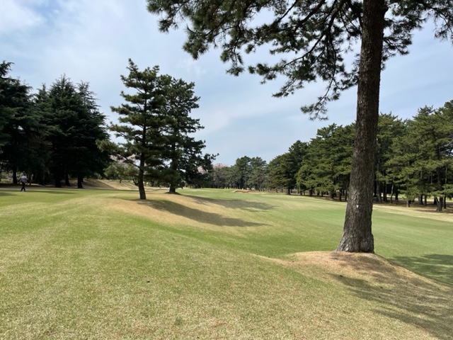 10番414yミドルは、ドライバーは右へ。チョン出し、3打目を5アイアンで打つもミス。4オンのダボ。ここを東京都のK.Mさんが2オンから無難にパー。