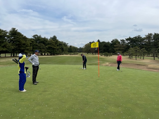 15番205yショートは、3wで打つもショート。も、ここからのチップが完璧。カップインでダイヤモンドバーディ。K.TさんとK.Mさんが1オンから無難にパー。