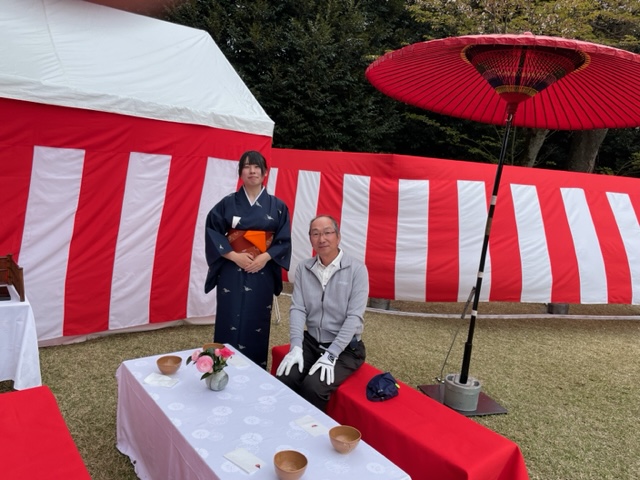 ここでお茶会。何年も桜の時期に来てますが、このお茶会に当たったのは初めてです。写真をどうぞご覧くださいませ。