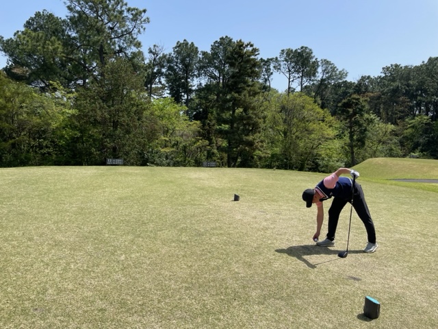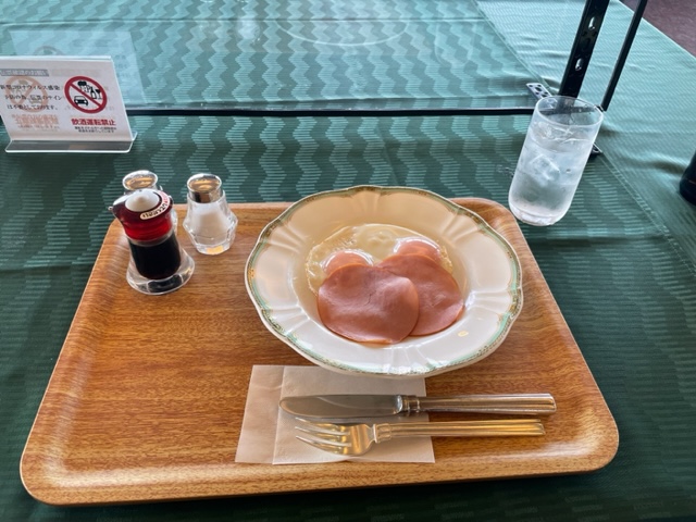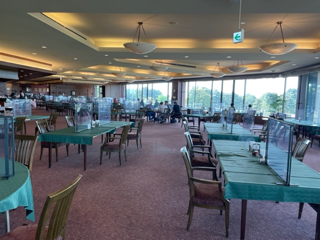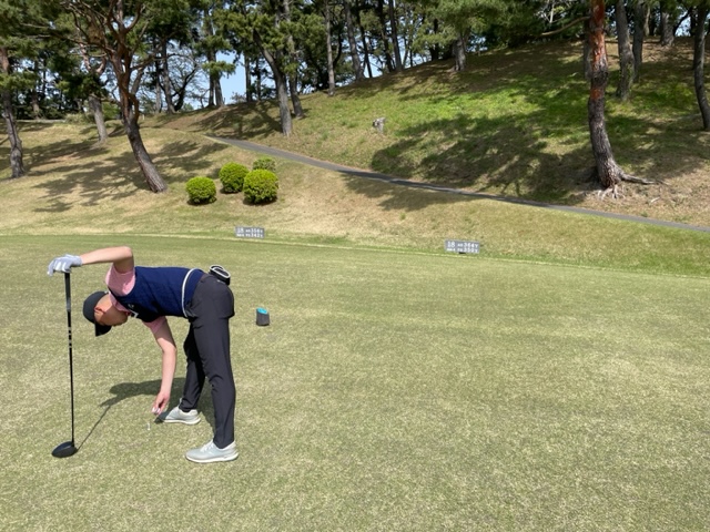 その後、レストランへ行き、今日は残念ながら富士山は見えませんでしたが、洋朝食をいただく。その後、パターを転がして、西アウトから。今日はPグリーンで青ティ使用です。