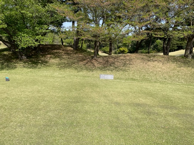 18番364yミドルは、ドライバーは右のクロスバンカーイン。PWで打つもショート。なんとか2mに寄せるもパターが入らず。